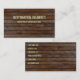 Dark old wood business card. (Well, okay--it's only pretend wood. It's paper that once was wood. In any case, it's a very nice business card that's striking without being silly). Realistic looking stained wood planks that look like an old floor that has been well loved and frequently polished. Great for people in the restoration business, or for anyone who values old things. Masculine but not macho.
