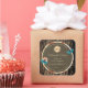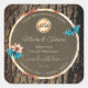 Make a lasting impression with this elegant and modern product label design featuring a dark brown wood grain and natural tree bark with a pretty rose golden frame and cute teal butterflies.