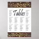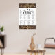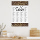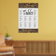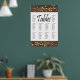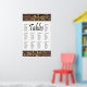 Background image of dark brown wood. Keep track of table assignments--insert names by table, or alphabetically. Room for 100 names. Use "customise" option if you need to change spacing. NOTE: When you insert your names, they will not line up evenly (because of differences in name length). To align them, click the customise button. You will see a list on the right. Hold down the ctrl key while clicking each name in the group you wish to align. Once they are all selected, click Arrange. Then click Align Selected. Then choose the image labelled "left." This will give your selected group a straight left-side alignment. While the names are still selected, you can then drag and drop the box on the design page if you want to move the whole block of names.