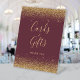 Dark Burgundy Gold Glitter Wedding Cards and Gifts Pedestal Sign