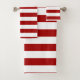 Dark Candy Apple Red and White Stripes Bath Towel Set