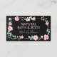Flowers and greenery on chalkboard business cards for a bath and body business who make body butter, bath bombs and soaks, and exfoliating scrubs.
