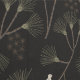 Dark Charcoal Bird & Pine Tree Pattern – Japandi Wallpaper