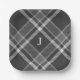 Dark Charcoal Grey Tartan Plaid with Monogram Paper Plate
