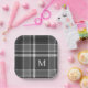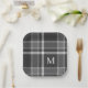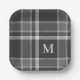 Dark Charcoal Grey Tartan Plaid with Monogram Paper Plate