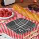 A special design for parties and celebrations, casual every day entertaining or for family time, this design has a rustic farmhouse style tartan plaid pattern in dark charcoal grey and off-white. It has a text template offset to one side that you can personalise with your monogram initial and is availalbe in 2 sizes in either square or round shapes.