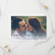 This save our date wedding card begins with your couple's photo. Save our date is written below in an elegant script photo. Two lines of text let you personalise your request. A special transparent overlay assures that you will be able to see the text, regardless of the colours in your photograph. There are two additional lines of text on the save our date back that you can customise.