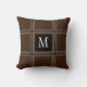 Dark Chocolate Brown Custom Single Initial Striped Cushion