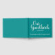 This minimalist guestbook features the messages "Our Guestbook" and "A message would be appreciated!", along with a personalised event date. The text is coloured ivory, and the background is coloured dark cyan. A generic, customisable guestbook such as this could perhaps be used at an event such as a birthday party, a retirement party, a family reunion, a funeral, or some other event with guests who may want to leave a message.