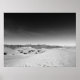 Elevate any space with this sweeping shot of Death Valley sand dunes. A dark sky hangs heavy above rocky mountains and shrub dabbled white sand dunes. A perfect photograph for any modern home or office.