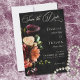 Step into a realm of exquisite elegance with our floral dark and moody wedding save the date card. Designed to captivate the senses, this design boasts a striking black background adorned with a breathtaking burst of autumnal florals in deep burgundy, burnt orange, creamy hues, and touches of luxurious gold, complemented by lush olive green foliage. The creamy text adds a touch of romance to the overall allure. Embrace the opulence of the season and set the tone for your special day with this stunning design, sure to leave a lasting impression on your guests. Created by Simply Farmhouse Press.