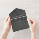 AVAILABLE WITH OR WITHOUT A QR CODE OR WITH OR WITHOUT DINNER SELECTION OPTIONS. This design features a dark charcoal black and silver marbleised background with the bride and groom's monogram. Created by Simply Farmhouse Press.