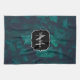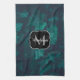 Dark emerald green ivy leaves water drops Monogram Tea Towel