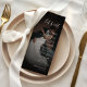 This elegant wedding menu featuring custom photo, text and modern script would make a wonderful addition to your party! Easily change the text by clicking on the "personalise this template" option.
