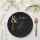 Dark Faded Photo & Gold Ampersand Black Wedding Paper Plate