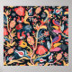 Silhouettes of flowers and birds adorn a dark background in this ornamental pattern.