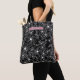 Dark Floral Black White Pattern & Pink Name Tote Bag