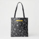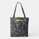 Dark Floral Black White Pattern Yellow Name Tote Bag