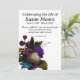 A dark turquoise floral funeral invitation or announcement is a beautiful and sombre way to express condolences and offer support to those who are grieving the loss of a loved one. The deep turquoise colour gives a sense of calmness and serenity, while the floral design adds a touch of elegance and beauty. The flowers on the funeral announcement may be depicted in shades of white or muted colours, symbolising the peacefulness and reverence of the occasion. The invitation/announcement may feature words of comfort or a simple message of sympathy, along with space for a personal note or signature. Overall, a dark turquoise floral funeral invitation is a thoughtful gesture that can bring comfort to those who are mourning.