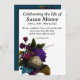 A dark turquoise floral funeral invitation or announcement is a beautiful and sombre way to express condolences and offer support to those who are grieving the loss of a loved one. The deep turquoise colour gives a sense of calmness and serenity, while the floral design adds a touch of elegance and beauty. The flowers on the funeral announcement may be depicted in shades of white or muted colours, symbolising the peacefulness and reverence of the occasion. The invitation/announcement may feature words of comfort or a simple message of sympathy, along with space for a personal note or signature. Overall, a dark turquoise floral funeral invitation is a thoughtful gesture that can bring comfort to those who are mourning.
