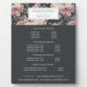 Chic pricing plaque featuring antique peonies against a charcoal black background, displays your services, price list or business information. Includes space for your business contact information along the bottom. A chic and elegant choice for any business. Add your custom wording to this design by using the "Edit this design template" boxes on the right hand side of the item, or click the blue "Customise it" button to arrange the text, change the fonts and colours and to also add additional information or images to this design. If you need any coordinating items, (thank you cards, etc.) please contact me for a custom order.