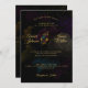 Dark Floral Moody Monogram Wedding Invitation. Part of The Amber Wedding Invitation Suite Collection. Dark Moody Florals and Monograms. Gold coloured Text is fully customisable. Illuminated Flowers. Dark black background with faded flowers.