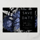 Dark Floral Navy Blue Silver Wedding Save the Date