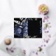 This elegant, moody wedding Save the Date card features a lush, romantic floral bouquet in navy blue with silver faux foil and glitter foliage on a black background. Customise the real silver foil text in stylish fonts on a black rectangle, and add your wedding website URL to the solid black back.