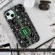 A stylish and dark floral pattern with a hand drawn aesthetic. This trendy black-and-white floral pattern has a modern feel with sketch like art. Customise this cute phone case with the owner's initial in dark green for extra personal detail. This phone case is available in six (6) different accent colours red, pink, yellow, green, blue, and purple to highlight your monogram. Choose your favourite colour.