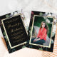 Classy and elegant floral botanical on black with faux gold frame, trendy photo graduation party invitation.