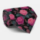 Elegant pattern featuring pink and magenta roses with deep green and burgundy leaves on a black background. Perfect for luxury fabric, romantic floral neck tie.