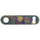 Botanical bottle opener with pretty floral art of roses, tulips, marigolds, and more. Different design on each side.