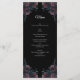 Elegant dark floral on black wedding invitation collection and decor is lovely with red, mauve, maroon and pink roses and greenery on a dark black background for a gothic wedding look. The flowers adorn the corners for an elegant, modern and sophisticated look.