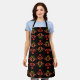 Dark Folk Art Floral Print Cosy Rustic Black Fall Apron