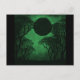 Grungy and cool Dark Forest Eclipse Postcard in green featuring a quiet forest scene with a lunar eclipse. This digital art postcard is perfect for sending a short note to a friend! Customise with your own text.