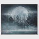 Dark forest. Gloomy dark scene with trees, big moo Wrapping Paper