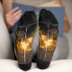 This artwork features an ornate skull adorned with a regal crown, intricately entwined with lush vines and vibrant flowers. Flickering candles add a mystical glow, casting dynamic shadows that bring the scene to life. All of this is set against a serene forest backdrop, creating a striking balance between beauty and mystery.