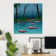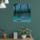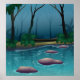 A dark looking forest with dark trees, stones and a pond. This design looks really effective on these Poster