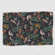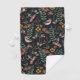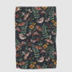 This golf towel features hummingbirds, birds, butterflies, moths, ferns, mushrooms, and flowers on a dark blue background.