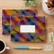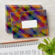 Bright and colourful abstract background of triangles in a rainbow palette, showcasing a digital geometric art style.
