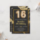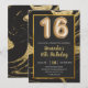 Marble Black and Gold Invitation Card for 16th Birthday Party with Balloon Numbers