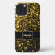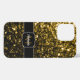 Dark gold yellow faux glitter sparkles Monogram iPhone Case