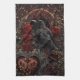 Dark Gothic Beauty Red Roses Black Crow Raven Bird Tea Towel