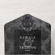 AVAILABLE WITH OR WITHOUT A QR CODE OR DINNER SELECTION OPTIONS. Step into a world of dark elegance with our captivating gothic wedding invitation. Set against a stunning black-on-black damask vintage wallpaper, this invitation exudes an air of mystery and timeless charm. At the top, a vintage purple, grey, and black cartouche cradles the couple's first initials, adding a touch of regal splendour to the design. With an aged look that exudes sophistication, this invitation is a perfect blend of old-world allure and contemporary appeal. The couple's initials are also beautifully repeated on the outside, setting the stage for a celebration that promises to be as enchanting as it is unforgettable. Embrace the allure of the past and invite your guests to witness a love that transcends time with this captivating gothic wedding invitation. Created by Simply Farmhouse Press.