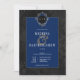 Step into a world of dark elegance with our captivating gothic wedding invitation. Set against a stunning black-on-black damask satin vintage floral wallpaper, this invitation exudes an air of mystery and timeless charm. At the top, a vintage grey, wine and black cartouche cradles the couple's first initials, adding a touch of regal splendour to the design. The text box background in rich royal blue adds a touch of colour. With an aged look that exudes sophistication, this invitation is a perfect blend of old-world allure and contemporary appeal. Embrace the allure of the past and invite your guests to witness a love that transcends time with this captivating gothic wedding invitation. Created by Simply Farmhouse Press.