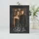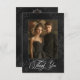 Step into a world of dark elegance with our captivating gothic wedding thank you card. Set against a stunning black-on-black damask satin vintage floral wallpaper, your wedding photo takes centre stage and exudes an air of mystery and timeless charm. At the top of the back, a vintage grey, brown and black cartouche cradles the couple's first initials, adding a touch of regal splendour to the design. The text box background in rich umber brown adds a touch of colour. With an aged look that exudes sophistication, this design is a perfect blend of old-world allure and contemporary appeal. Embrace the allure of the past that transcends time with this captivating gothic wedding design. Created by Simply Farmhouse Press.