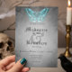 Dark Gothic Black Watercolor Teal Moth Wedding Invitation