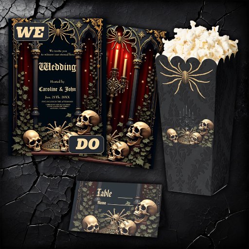 Dark Gothic Elegance. Stunning archway supported by two majestic pillars finished in a dark finish. These pillars are lushly covered in ivy, the green leaves of which provide a vibrant contrast to the dark materials. At the base of the archway lie three realistically depicted human skulls surrounded by more ivy. These elements add a deeper meaning to the design and are a reminder of the transience of life and the strength of love that endures even beyond death.