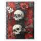 Dark Gothic Floral Skulls Red & Black Stripe Notebook