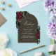 Elegant dark gothic red green floral moody black wedding Invitation. Make a bold statement with this modern dark gothic red and green floral moody chic wedding acrylic invitation. Featuring a striking blend of deep crimson roses, lush emerald greenery, and an elegant translucent acrylic design, this invitation exudes mystery and romance. The sleek modern aesthetic, combined with rich floral details and dark moody tones, creates a captivating and sophisticated look. Perfect for couples who love gothic elegance with a contemporary twist, this unique invitation sets the tone for an unforgettable celebration.